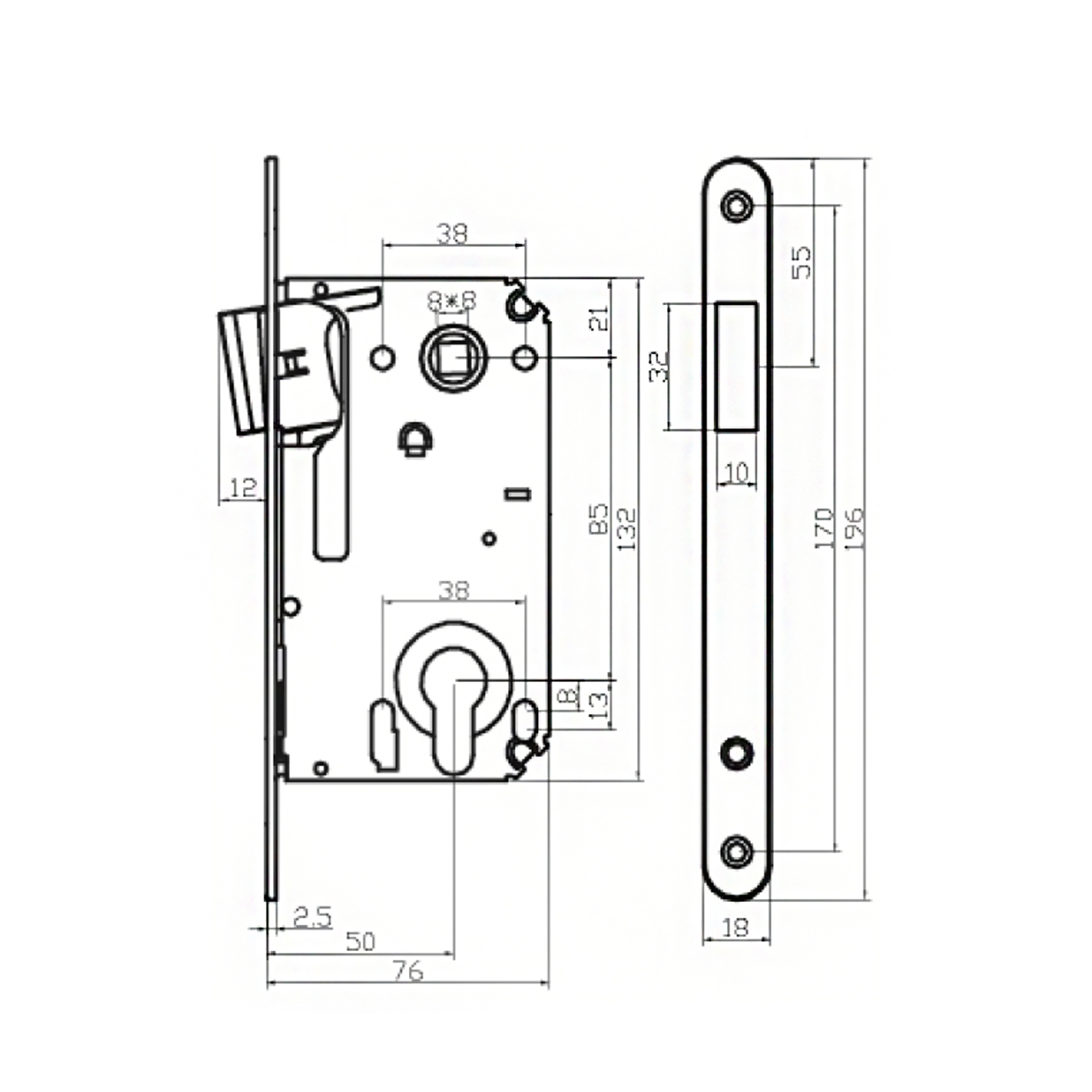 Бэксет: 50 ммМежосевое расстояние: 85 мм