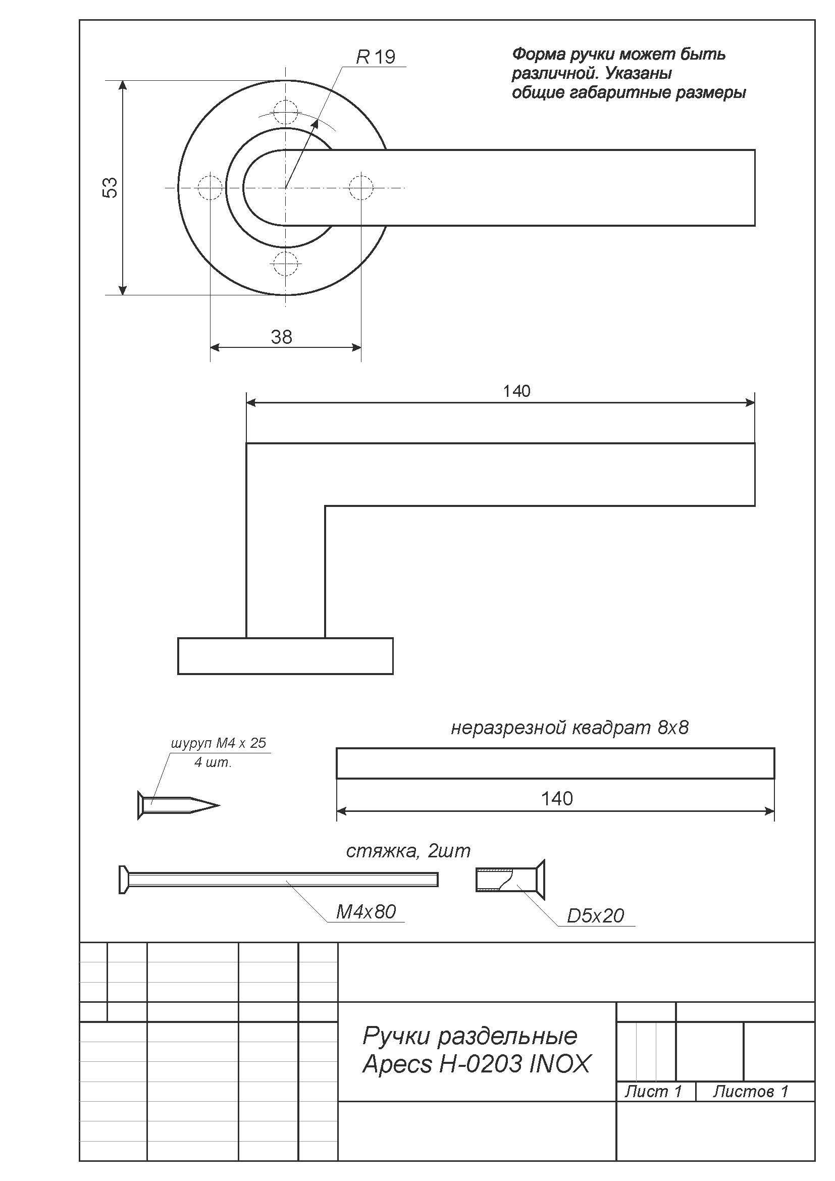 Ручки раздельные Apecs модель H-0203-INOX