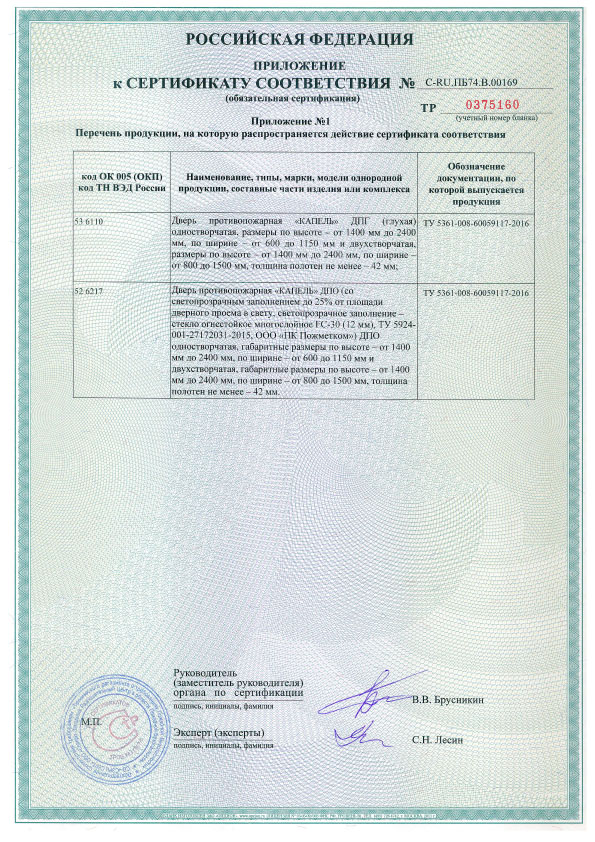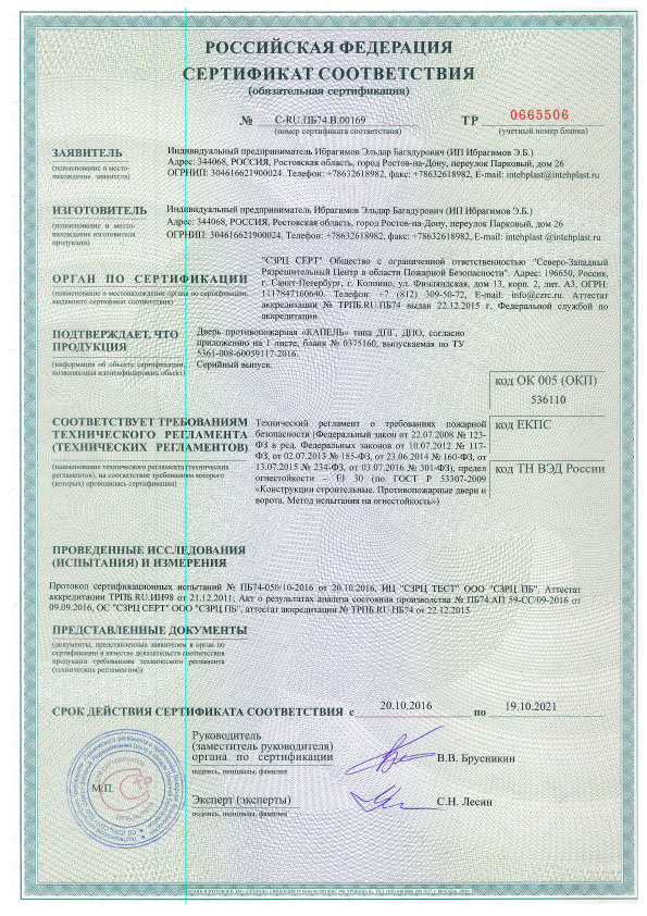 Сертификат соответствия № С-RU.ПБ74.В.00169; №С-RU.ПБ74.В.00257